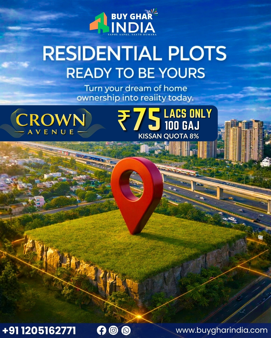 Welcome to Crown Avenue, a distinguished address designed for those who value space, elegance, and future-ready living. Crafted as a premium plotted development, Crown Avenue blends modern infrastructure, natural serenity, and strategic connectivity — creating the perfect destination to build your dream home or secure a high-growth investment.